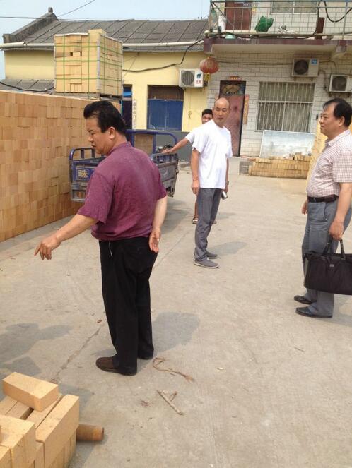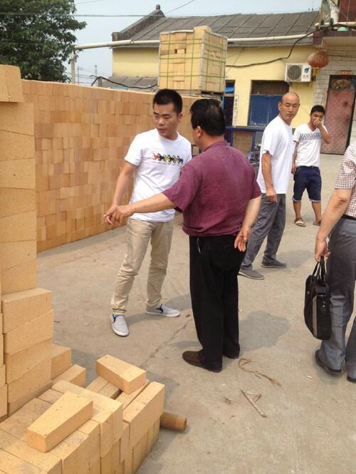 客戶在公司成品車間駐足指導耐火磚的使用和配套使用的方法。