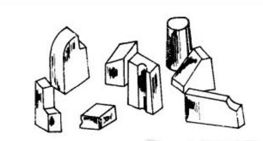凡外形尺寸的比例在1:5范圍以內,具有不多于1個凹角,或具有50o~75o的銳角,或帶有不多于2個溝槽(按總數計)的重量為2~12Kg的硅質耐火磚,命名為硅質異型耐火磚。見下圖二