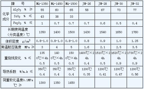 輕質(zhì)剛玉莫來(lái)石磚理化指標(biāo):