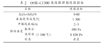 (9)粘貼多晶莫來石貼塊的高溫黏結(jié)劑型號為OSM-C1300,其性能見表2所示。