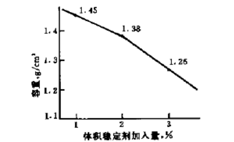 圖3 體積穩(wěn)定劑加人量對(duì)輕質(zhì)部分容重的影響