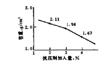 圖4 抗壓劑加入量對(duì)輕通部分容重的影響